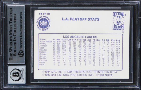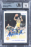 This Autographed Auto Graded Gem Mint 10! 1985 Star Lakers Champs #14 Card has been Personally Signed by Magic Johnson of the Los Angeles Lakers. This item is 100% Authentic, it comes slabbed and authenticated by Beckett Authentication Services. We conducted an autograph signing with Magic Johnson where multiples of the same item were signed. While the photographs are representative of this item, the size, placement and strength of the signature may vary. Each item is hand signed, therefore, each autograph is unique. This item can be verified through BAS Slabbed.