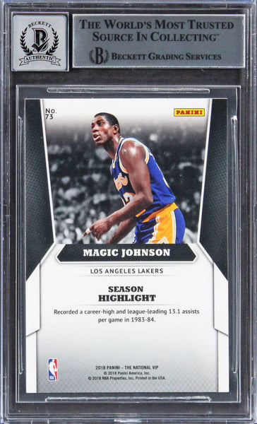 This Autographed Auto Graded Gem Mint 10! 2018 National Convention Gold VIP #73 Card has been Personally Signed by Magic Johnson of the Los Angeles Lakers. This item is 100% Authentic, it comes slabbed and authenticated by Beckett Authentication Services. We conducted an autograph signing with Magic Johnson where multiples of the same item were signed. While the photographs are representative of this item, the size, placement and strength of the signature may vary. Each item is hand signed, therefore, each autograph is unique. This item can be verified through BAS Slabbed.