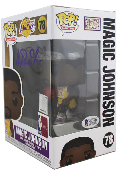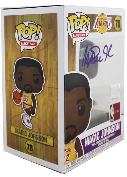 This Autographed w/ Purple Signature NBA Hardwood Classic #78 Funko Pop Vinyl Figure has been Personally Signed by Magic Johnson of the Los Angeles Lakers. This item is 100% Authentic to include a Certificate of Authenticity (COA) / hologram by Beckett Authentication Services. This is a BAS Witnessed Protection Program item which means a Beckett Authentication Service representative was present when this item was being signed. This is a stock item. We conducted an autograph signing with Magic Johnson and we have several of these available. The one you will receive will be of equal quality to the one pictured. This item can be verified through BAS Witnessed.This item will ship in a Pop! Protector, please refer to the photos for condition of the item or reach out to us prior to purchase. All of the Pop Boxes will have dings, creases or scratches. They are in good to very good condition but would not be considered mint.
