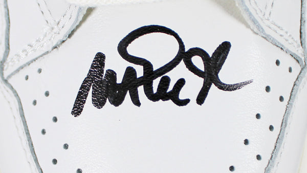 This Autographed Right Purple & White Converse Weapon Shoe has been Personally Signed by Magic Johnson of the Los Angeles Lakers. This item is 100% Authentic to include a Certificate of Authenticity (COA) / hologram by Beckett Authentication Services. This is a BAS Witnessed Protection Program item which means a Beckett Authentication Service representative was present when this item was being signed. We conducted an autograph signing with Magic Johnson where multiples of the same item were signed. While the photographs are representative of this item, the size, placement and strength of the signature may vary. Each item is hand signed, therefore, each autograph is unique. This item can be verified through BAS Witnessed. The size may vary from size 10-12.