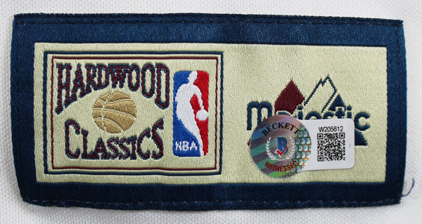 This Autographed White Majestic Hardwood Classics Warmup Shirt has been Personally Signed by Magic Johnson of the Los Angeles Lakers. This item is 100% Authentic to include a hologram by Beckett Authentication Services. This item will come with an affixed Beckett Authentication Services (BAS) authentication sticker, which includes a scannable QR code to verify authenticity. Please note that Beckett no longer provides serial-numbered COA cards, and the attached BAS sticker will serve as the complete authentication for this item. This is a BAS Witnessed Protection Program item which means a Beckett Authentication Service representative was present when this item was being signed. The authenticity can be verified on Beckett Authentication Services website. Please refer to photos for condition prior to purchase.