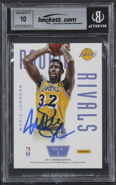 Larry Bird & Magic Johnson Signed 2012 Panini Marquee #4 Card Auto 10! BAS Slab