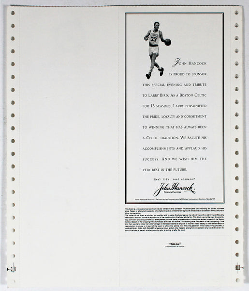Larry Bird & Magic Johnson Signed Larry Bird Night Uncut Ticket BAS #AD04595