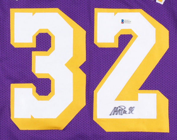 Custom on-court style jersey. Everything is sewn on, size XL. Hand-signed in black felt-tip pen by Magic Johnson (HOF). Magic Johnson is widely considered one of the greatest basketball players of all time. Johnson's career achievements include three NBA MVP Awards, five NBA Championships, three NBA finals MVP awards, twelve All-Star games, nine time All-NBA first team nods. The lot / autograph(s) includes an official Beckett Authentication Services serially numbered hologram and matching COA for authenticity purposes. The signing of this item was witnessed by Beckett.Authentication: Beckett COA