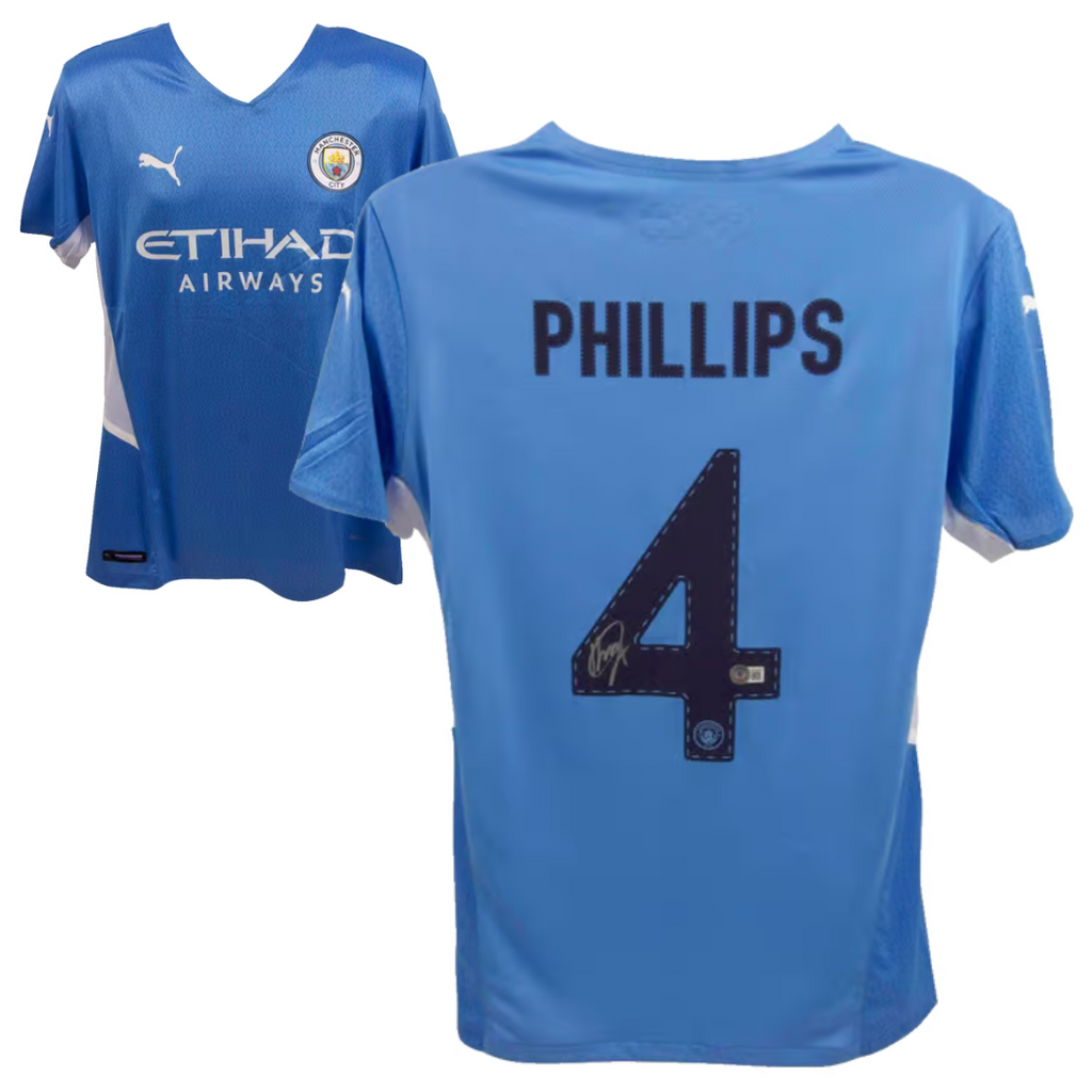 This is a Kalvin Phillips Signed Manchester City Home Soccer Jersey #4 with Beckett COA. THE ITEM IN THE PICTURE IS A STOCK IMAGE. YOU WILL RECEIVE AN IDENTICAL ITEM OF EQUAL QUALITY. ALL JERSEYS ARE SIZE LARGE. Every item of signed memorabilia we sell is official and of the highest quality. We pride ourselves on providing sports fans with the most exclusive signed memorabilia on the market. We are an industry leading signed memorabilia company who can guarantee 100% authenticity on every signature we sell. The item you receive will be identical to the one you are seeing in the stock pictures. This includes the item, the authentication company, signature color and signature placement. We take pride in ensuring the authenticity of all our items. With unwavering commitment, we guarantee that every signature is 100% authentic. Every item of signed memorabilia comes with a scannable barcode which takes you to the certificate of authenticity on the company's website. These industry leading authentication companies include Beckett Authentication Services, James Spencer Authentication Services and Professional Sports Authentication Services.