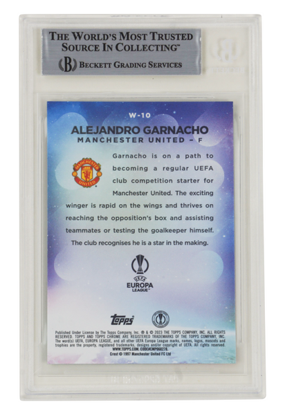 This is a Alejandro Garnacho Signed 2022-23 Topps Chrome UCC Wonderkids - BGS Authentic. THE ITEM IN THE PICTURE IS A STOCK IMAGE. YOU WILL RECEIVE AN IDENTICAL ITEM OF EQUAL QUALITY. ALL JERSEYS ARE SIZE LARGE. Every item of signed memorabilia we sell is official and of the highest quality. We pride ourselves on providing sports fans with the most exclusive signed memorabilia on the market. We are an industry leading signed memorabilia company who can guarantee 100% authenticity on every signature we sell. The item you receive will be identical to the one you are seeing in the stock pictures. This includes the item, the authentication company, signature color and signature placement. We take pride in ensuring the authenticity of all our items. With unwavering commitment, we guarantee that every signature is 100% authentic. Every item of signed memorabilia comes with a scannable barcode which takes you to the certificate of authenticity on the company's website. These industry leading authentication companies include Beckett Authentication Services, James Spencer Authentication Services and Professional Sports Authentication Services.