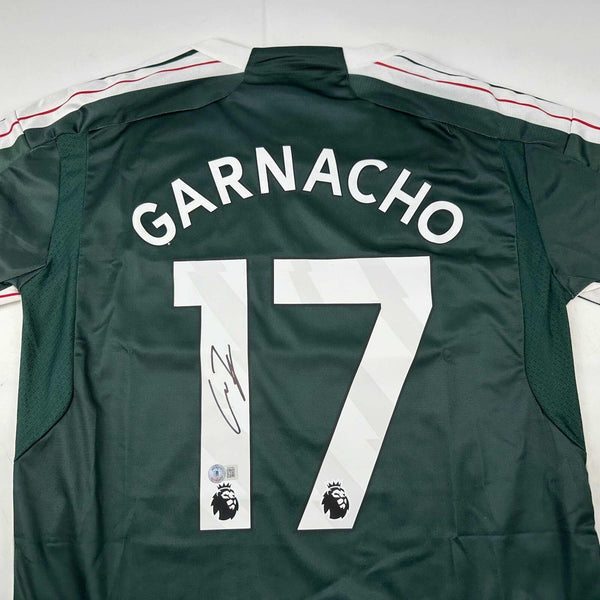 Autographed/Signed Alejandro Garnacho Manchester United Green Jersey Beckett COA Every item we sell is simply authentic and certified by a trusted third party authenticator. Buy with confidence and feel free to ask us any questions.
