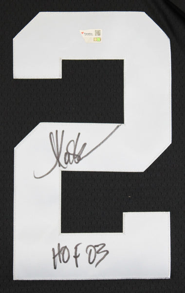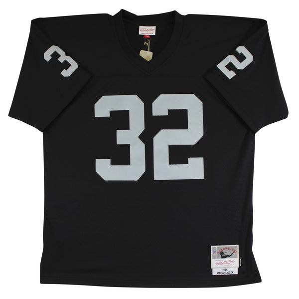 This Autographed Black Mitchell & Ness Jersey with the inscription of "HOF 03" has been Personally Signed by Marcus Allen of the Las Vegas Raiders. This item is 100% Authentic to includes a numbered hologram by Fanatics. We conducted an autograph signing with Marcus Allen where multiples of the same item were signed. While the photographs are representative of this item, the size, placement and strength of the signature may vary. Each item is hand signed, therefore, each autograph is unique. This item can be verified through Fanatics. This is a X-Large sized Jersey.