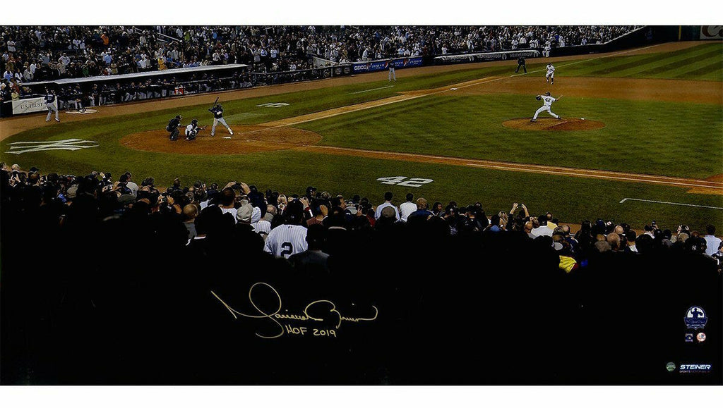 MARIANO RIVERA Autographed / Inscribed "HOF 2019" 'Big Signature' 16" x 32" Photograph - STEINER SPORTS AUTHENTICATED This item has been hand signed by former New York Yankees closer & 2019 Baseball Hall Of Fame inductee Mariano Rivera. The signature on this item has been authenticated by Steiner Sports and features a uniquely numbered tamper proof hologram which can be verified in our online database. This process ensures your item is authentic and prevents duplication and fraud. MONEY BACK GUARANTEE! If for any reason you are not completely satisfied with the quality or authenticity of your purchase, we will gladly give you a full refund or exchange, whichever you prefer up to 30 days after purchase. Please feel free to e-mail us with any questions. Thank you. Authenticator Pre-Certified Authenticator: Steiner Sports Authenticated History of item: Mariano Rivera has signed this item in the presence of a representative from Steiner Sports. Describe how you came to possess this item: Super Sports Center is a fully authorized dealer for Upper Deck Authenticated as well as Mounted Memories and Steiner Sports. Other information about you and / or the item: Super Sports Center strives to deliver the most authentic in sports memorabilia from trusted companies like Mounted Memories, Steiner Sports and Upper Deck Authenticated. If it exists, we can find it for you!