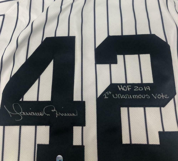 This authentic jersey has been personally hand-signed and inscribed "HOF 2019" "1st Unanimous Vote" by Mariano Rivera. It comes with an individually numbered, tamper-evident hologram from Steiner Sports. To ensure authenticity, the hologram can be reviewed online. This process helps to ensure that the product purchased is authentic and eliminates any possibility of duplication or fraud.This jersey is limited to only 42 and you are bidding on a random number from the edition.