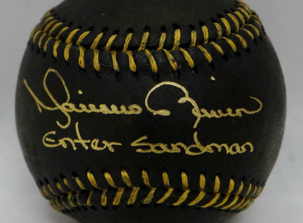 Mariano Rivera Autographed Rawlings OML Black Baseball W/Enter Sandman-JSA Auth This is a Hand Autographed Baseball of Mariano Rivera. This is a Rawlings Official Game Ball Major League Baseball. This item has a James Spence Authentication, which Comes with a JSA #'ed Sticker and a Matching JSA COA. You can view this item on the SpenceLOA website. It was signed either at a public autograph appearance or a Private Signing. This is a stock photo of the item. Although you may not receive this exact item, the item you receive is virtually identical and brand new in great shape.