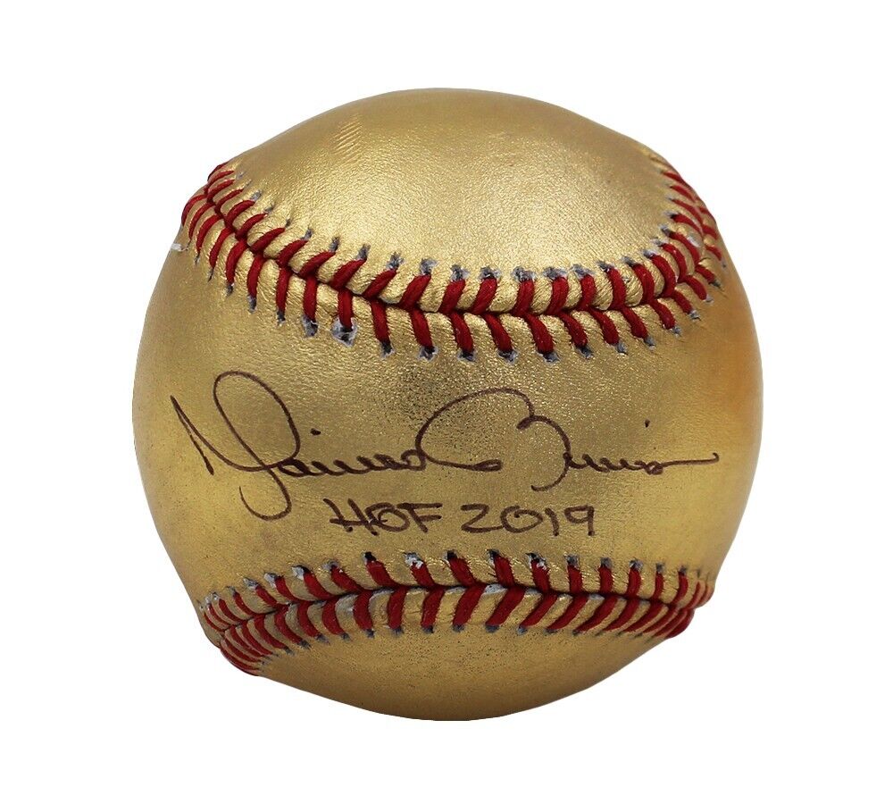 A New York Yankees Rawlings Official Major League Gold MLB Baseball hand signed by Mariano Rivera. The item and signature are in excellent condition. In addition to signing his name, Mariano also inscribed "HOF 19" on the item. Mariano is a former professional baseball player, a 13x All Star and a 5x World Series Champion. AUTHENTICATION: The item is accompanied by a Beckett Serial Numbered and Databased Hologram.