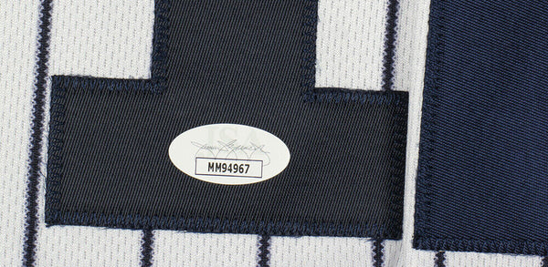 Featured is a Mariano Rivera signed New York Yankees Majestic authentic baseball jersey, in which he added the "1st Unanimous HOF" inscription. This jersey was hand signed by Mariano Rivera and authenticated by JSA authentication services. Included with the jersey is a JSA hologram and certificate of authenticity. This jersey would make a great addition to any sports memorabilia collection. SPECIFICATIONS Autographed By: Mariano Rivera Team: New York Yankees Sport: Baseball Authentication: James Spence Authentication (JSA)