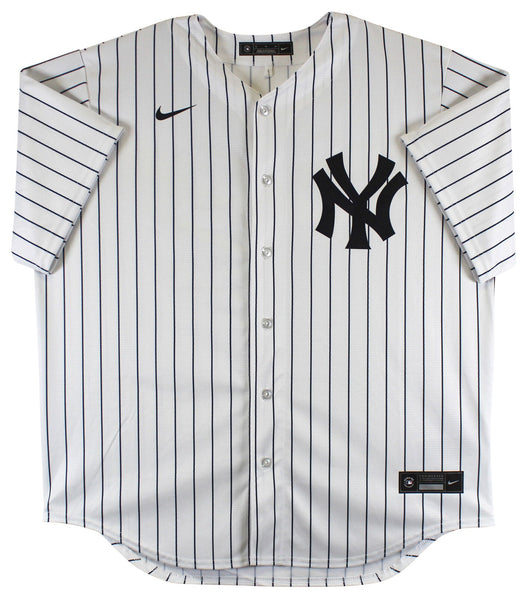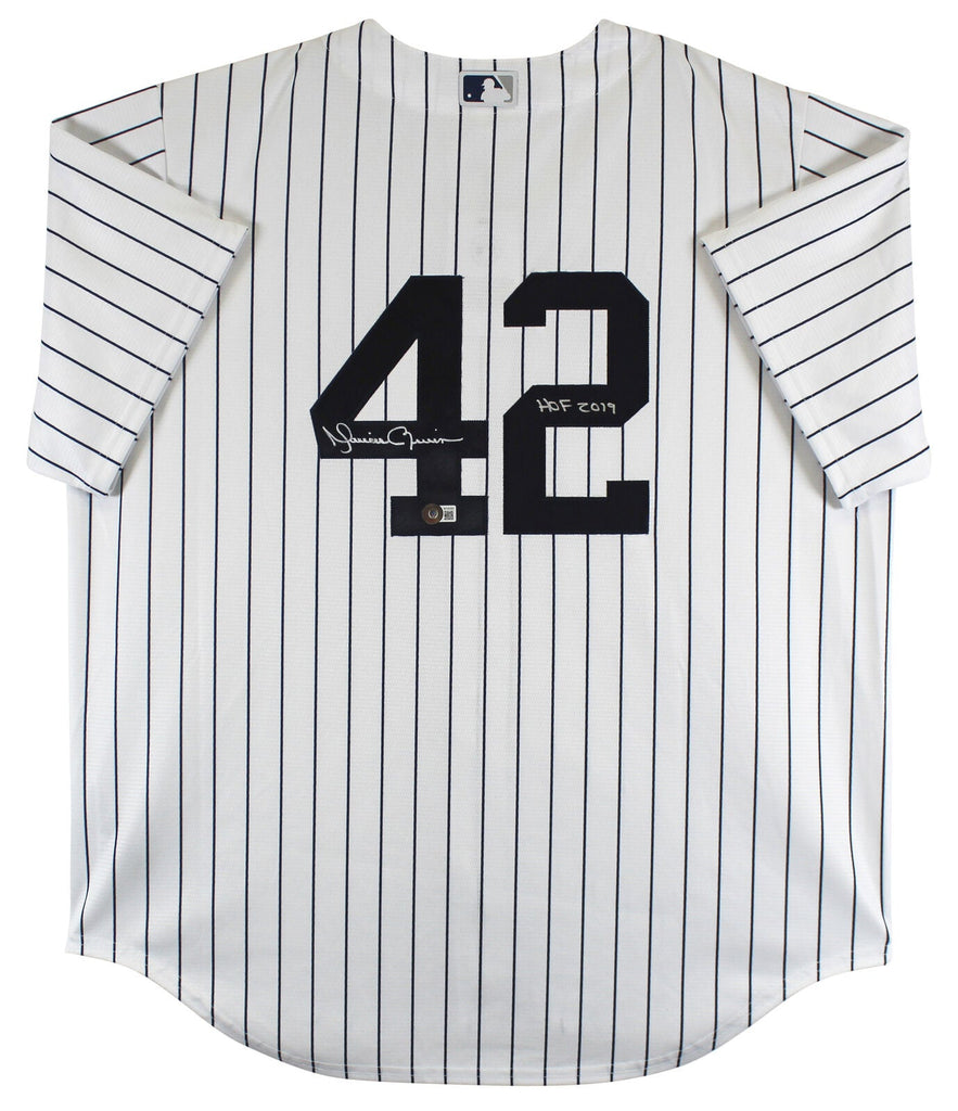This Autographed White Pinstripe Nike Jersey with the inscription of "HOF 2019" has been Personally Signed by Mariano Rivera of the New York Yankees. This item is 100% Authentic to include a hologram by Beckett Authentication Services. This item may come with the new Beckett Authentication hologram that has a scannable QR code rather than the traditional COA. If you would like to have a COA, you are welcome to reach out to Beckett for a printed certification once you receive your item. This is a BAS Witnessed Protection Program item which means a Beckett Authentication Service representative was present when this item was being signed. We conducted an autograph signing with Mariano Rivera where multiples of the same item were signed. While the photographs are representative of this item, the size, placement and strength of the signature may vary. Each item is hand signed, therefore, each autograph is unique. This item can be verified through BAS Witnessed. This is a X-Large sized, non-branded, custom-stitched Jersey.