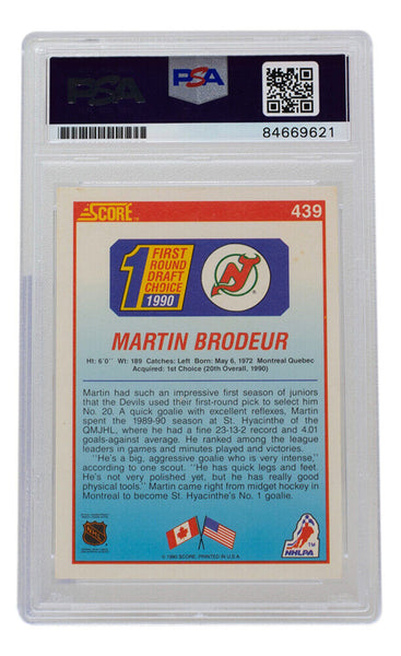 Martin Brodeur Signed 1990 Score New Jersey Devils Rookie Card #439 PSA/DNA