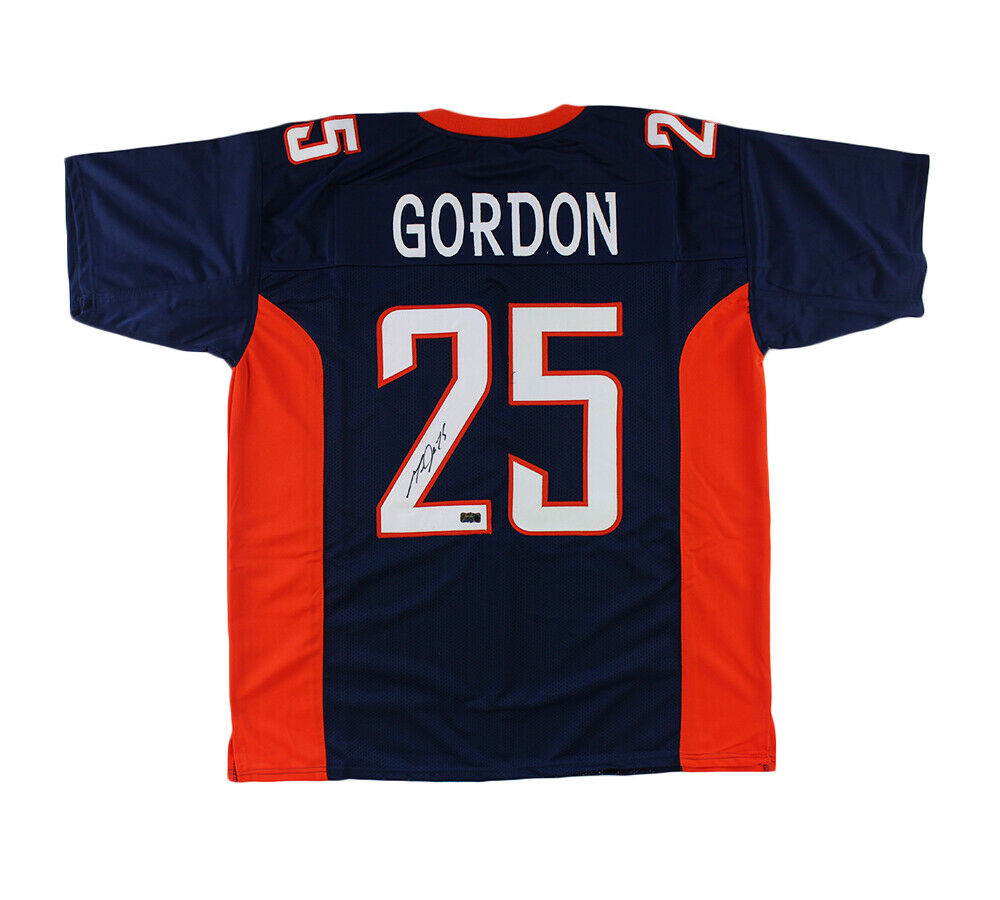 A Denver Custom Blue Jersey hand signed by Melvin Gordon. The item and signature are in excellent condition. Melvin is a NFL running back for the L.A. Chargers, he was drafted first round in the 2015 Draft by the Chargers. He is a 2x Pro Bowler. Melvin played football in College at the University of Wisconsin, he was Big Ten Offensive Player of the Year in 2014. AUTHENTICATION: The item is accompanied by a Melvin Gordon Exclusive Certificate of Authenticity - Melvin Gordon Exclusive Serial Numbered and Databased Hologram