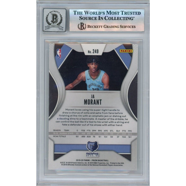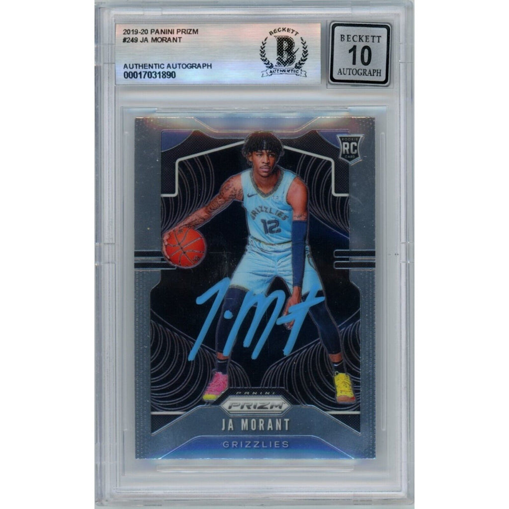 The number in the listing title is just an inventory sku for our records and is not the authentication number. The item pictured is the exact item you will receive, please see photos for condition. This is a Memphis Grizzlies slabbed 2019 Prizm #249 trading card with a grade 10 auto that was personally autographed by Ja Morant. Includes a certificate of authenticity from Beckett Authentication Services (BAS) and Denver Autographs.FREE SHIPPING within the USA on orders over $10!