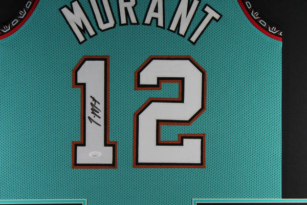 JA MORANT AUTOGRAPHED & PROFESSIONALLY FRAMED PRO-STYLE JERSEY(Occasionally our own stock pictures are used at times due to quantity of framing, all frames will look identical as the one pictured)THE FRAMED JERSEY MEASURES 35"x 44" & COMES WITH THE FOLLOWING:-UV Protected Acrylic-Triple Acid Free Team Colored Matting-2 High Quality 8"x10" Photos-Team LogoEvery framed autographed jersey is accompanied with a tamper-proof hologram on the signed part of the jersey from one of the main authenticators in the industry (JSA, Beckett, PSA, etc.) and can be verified on their corresponding websites to prove authenticity.