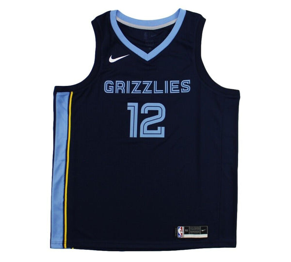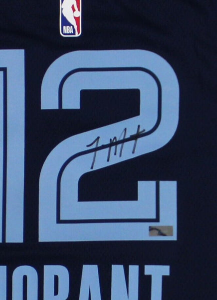 A Memphis Grizzlies Nike Swingman Navy Blue NBA Jersey hand signed by Ja Morant. The item and signature are in excellent condition. Ja is a point guard for the Memphis Grizzlies. He is 2x NBA All-Star and NBA most improved player in 2022. AUTHENTICATION: The item is accompanied by a Panini Authentic Certificate of Authenticity - Panini Authentic Serial Numbered and Databased Hologram