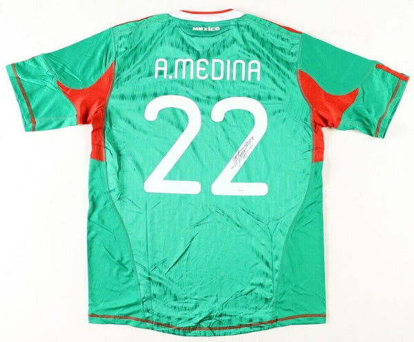 Reebok soccer jersey. Everything pressed on, size Adult Large. Hand-signed by Alberto Medina.The autograph(s) includes an official James Spence Authentication (JSA) hologram and matching COA for authenticity purposes.Authentication: JSA COA
