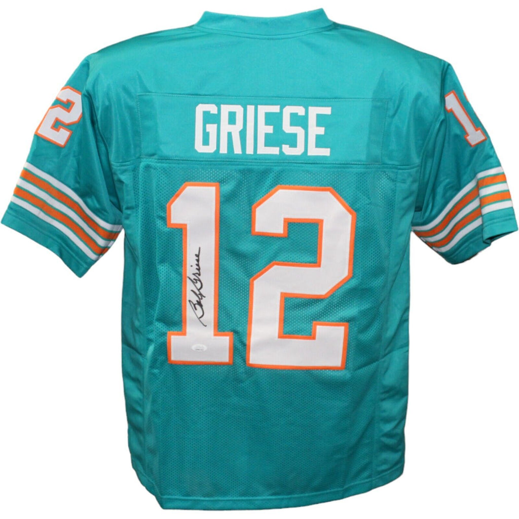 Bob Griese Autographed/Signed Pro Style Teal Jersey JSA 43415 The number in the listing title is just an inventory sku for our records and is not the authentication number. The item pictured is the exact item you will receive, please see photos for condition. This is a Pro Style Teal Jersey that was personally autographed by Bob Griese. Includes a certificate of authenticity from James Spence Authentication (JSA) and Denver Autographs.