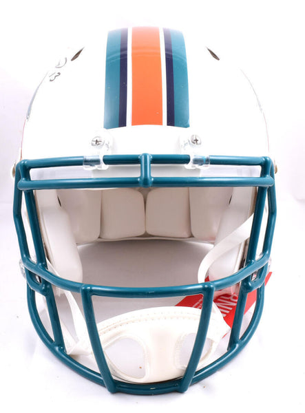 Dan Marino Autographed Miami Dolphins F/S 97-12 Speed Authentic Helmet-Beckett W Hologram *Black This is a Dan Marino of the Miami Dolphins hand autographed Riddell Full Size 97-12 Speed Authentic Helmet. This item has a Beckett Witnessed Authentication, which comes with a numbered sticker hologram and a QR code for verification. You can view this item on the Beckett website and it shows when and where the item was signed. It was signed either at a public autograph appearance or a private signing. This is a stock photo of the item. Although you may not receive this exact item, the item you receive is virtually identical, brand new, and in great shape.