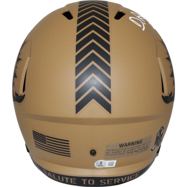 Devon Achane Autographed Miami Dolphins 23 Salute F/S Helmet Beckett 43837 The number in the listing title is just an inventory sku for our records and is not the authentication number. The item pictured is a stock photo unless otherwise noted. This is a Miami Dolphins Full Size Replica 2023 Salute to Service Helmet that was personally autographed by Devon Achane. Includes a certificate of authenticity from Beckett Authentication Services (BAS) and Denver Autographs.