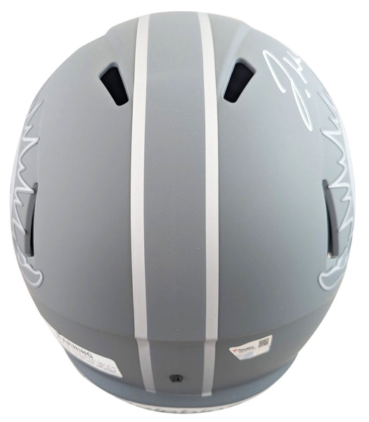This Autographed Alternate Slate Riddell Full Size Speed Rep Helmet has been Personally Signed by Jaylen Waddle of the Miami Dolphins. This item is 100% Authentic to includes a numbered hologram by Fanatics. We conducted an autograph signing with Jaylen Waddle where multiples of the same item were signed. While the photographs are representative of this item, the size, placement and strength of the signature may vary. Each item is hand signed, therefore, each autograph is unique. This item can be verified through Fanatics.