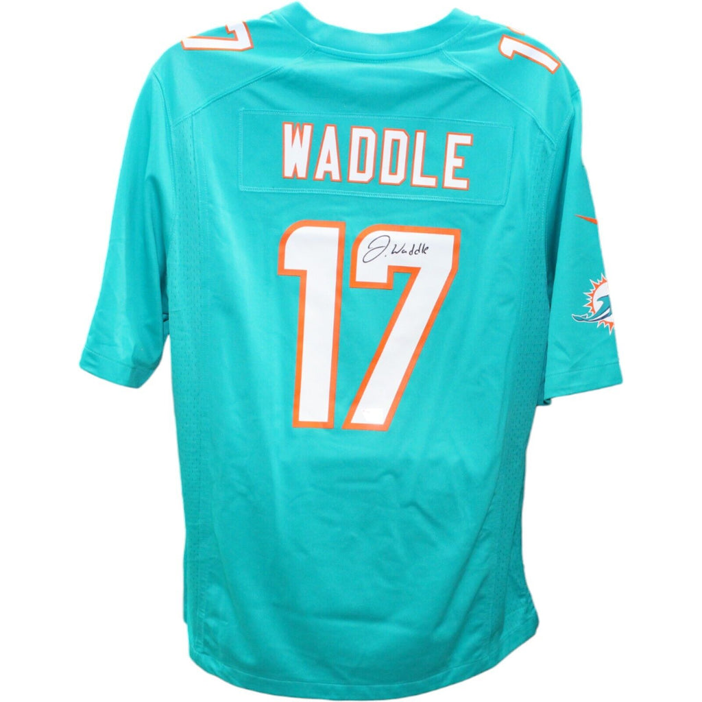 The number in the listing title is just an inventory sku for our records and is not the authentication number. The item pictured is a stock photo unless otherwise noted. This is a Miami Dolphins Aqua Nike Game sz XL Jersey that was personally autographed by Jaylen Waddle. Includes a certificate of authenticity from Fanatics Authentics (FAN) and Denver Autographs.FREE SHIPPING within the USA on orders over $10!