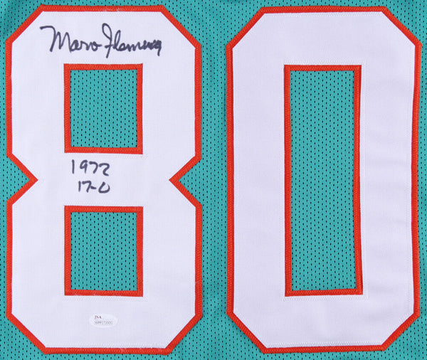 Custom on-field style jersey. Everything is sewn on, size XL. Hand-signed and inscribed in black felt-tip pen by Marv Fleming. The lot / autograph(s) includes an official James Spence Authentication (JSA) hologram and matching COA for authenticity purposes. The signing of this item was witnessed by JSA.Authentication: JSA COA