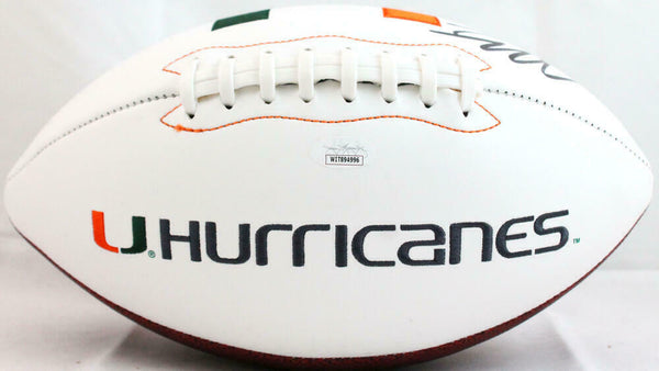 Andre Johnson Autographed Miami Hurricanes Logo Football- JSA W *Black This is a Hand Autographed Logo Football of Andre Johnson of the Miami Hurricanes. This item has a James Spence Witness Protection Authentication, which Comes with a JSA #'ed Sticker and a Matching JSA COA. You can view this item on the SpenceLOA website, it shows when and where the item was signed. It was signed either at a public autograph appearance or a Private Signing. This is a stock photo of the item. Although you may not receive this exact item, the item you receive is virtually identical and brand new in great shape.