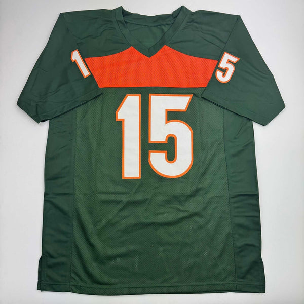 Autographed/Signed Greg Rousseau Miami Green College Football Jersey JSA COA Jersey has no brand names or logos. This is a custom jersey and was not manufactured by or in any manner associated with any professional sports league or manufacturer. This custom jersey carries no professional sports league designation. The item is intended to be an autographed collectible. The custom jersey displays the name and number of the player. This item in no way is affiliated with or connected to any professional sports organization. Size is XL.