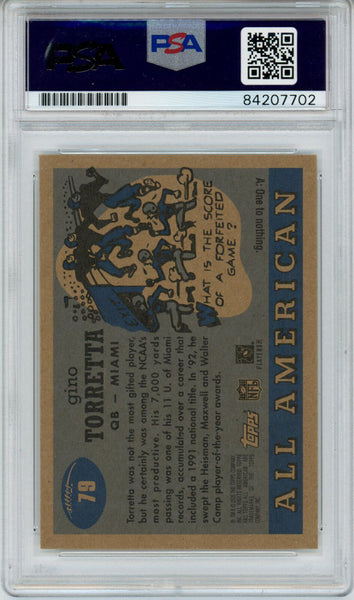 Gino Toretta Autographed 2005 Topps All American Trading Card PSA Slab 32618 The number in the listing title is just an inventory sku for our records and is not the authentication number. This is a 2005 Topps All American Trading Card that was personally autographed by Gino Toretta. This has been slabbed by Professional Sports Authentication (PSA) and includes a certificate of authenticity from Denver Autographs.