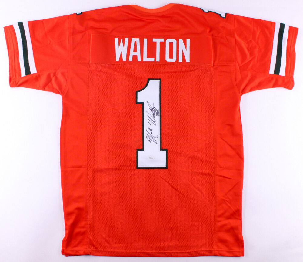 Custom on-field style jersey. Everything is sewn on, size XL. Hand-signed and inscribed in black felt tip pen by Mark Walton. The lot / autograph(s) includes an official James Spence Authentication (JSA) hologram and matching COA for authenticity purposes. The signing of this item was witnessed by JSA.Authentication: JSA COA