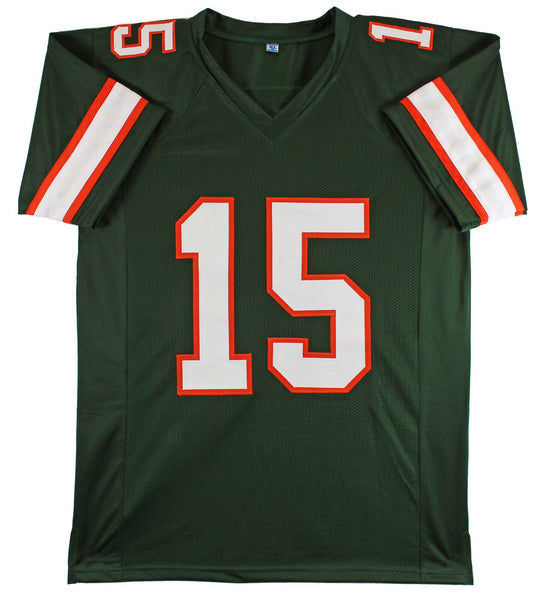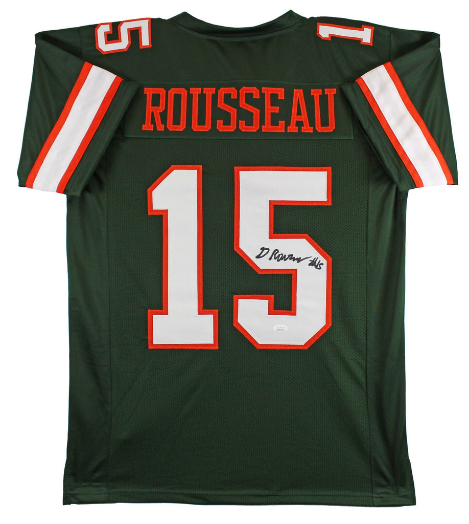 This Autographed Green Pro Style Jersey has been Personally Signed by Greg Rousseau of the Miami Hurricanes. This item is 100% Authentic to include a Certificate of Authenticity (COA) / hologram by JSA Witness. This is a JSA Witnessed Protection Program item which means a JSA representative was present when this item was being signed. We conducted an autograph signing with Greg Rousseau where multiples of the same item were signed. While the photographs are representative of this item, the size, placement and strength of the signature may vary. Each item is hand signed, therefore, each autograph is unique. This item can be verified through JSA Witness.