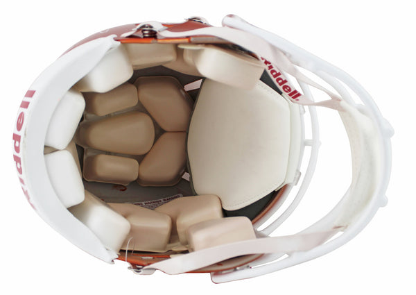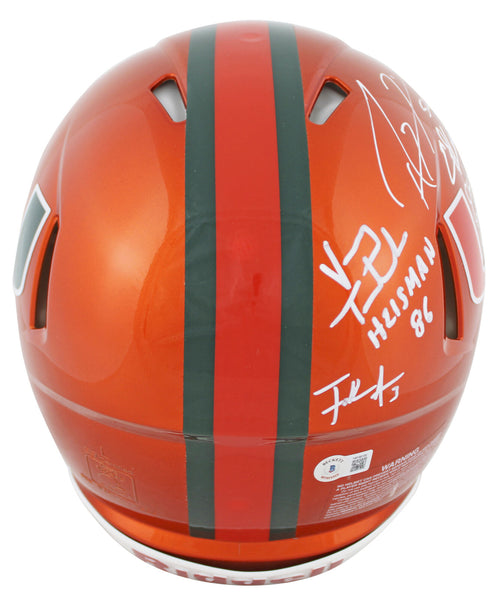 This Autographed Alternate Flash Riddell Authentic Full Size Speed Proline Helmet with the inscription of "HT 86 (Testaverde)" has been Personally Signed by Ray Lewis, Michael Irvin, Jim Kelly, Edgerrin James, Jimmy Johnson, Frank Gore, Ed Reed & Vinny Testaverde of the Miami Hurricanes. This item is 100% Authentic to include a hologram by Beckett Authentication Services. This item will come with an affixed Beckett Authentication Services (BAS) authentication sticker, which includes a scannable QR code to verify authenticity. Please note that Beckett no longer provides serial-numbered COA cards, and the attached BAS sticker will serve as the complete authentication for this item. This is a BAS Witnessed Protection Program item which means a Beckett Authentication Service representative was present when this item was being signed. We conducted an autograph signing with Ray Lewis, Michael Irvin, Jim Kelly, Edgerrin James, Jimmy Johnson, Frank Gore, Ed Reed & Vinny Testaverde where multiples of the same item were signed. While the photographs are representative of this item, the size, placement and strength of the signature may vary. Each item is hand signed, therefore, each autograph is unique. This item can be verified through BAS Witnessed.