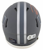 This Autographed Alternate Slate Speed Mini Helmet has been Personally Signed by Ray Lewis of the Miami Hurricanes. This item is 100% Authentic to include a hologram by Beckett Authentication Services. This item will come with an affixed Beckett Authentication Services (BAS) authentication sticker, which includes a scannable QR code to verify authenticity. Please note that Beckett no longer provides serial-numbered COA cards, and the attached BAS sticker will serve as the complete authentication for this item. This is a BAS Witnessed Protection Program item which means a Beckett Authentication Service representative was present when this item was being signed. We conducted an autograph signing with Ray Lewis where multiples of the same item were signed. While the photographs are representative of this item, the size, placement and strength of the signature may vary. Each item is hand signed, therefore, each autograph is unique. This item can be verified through BAS Witnessed.