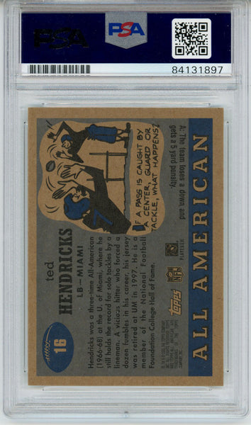 Ted Hendricks Autographed 2005 Topps All American Trading Card PSA Slab 32589 The number in the listing title is just an inventory sku for our records and is not the authentication number. This is a 2005 Topps All American Trading Card that was personally autographed by Ted Hendricks. This has been slabbed by Professional Sports Authentication (PSA) and includes a certificate of authenticity from Denver Autographs.