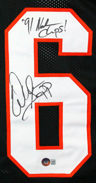 Warren Sapp Autographed Black College Style Jersey w/Insc.-Beckett W Hologram *Black THIS IS NOT AN NCAA JERSEY. THIS HAS NO TAGS, NO LOGOS, NO EMBLEMS. This is a hand autograph of Warren Sapp on a Custom Made (non name brand) Authentic Style Jersey with stitched letters and numbers. Inscribed 91 National Champs. This item has a Beckett Witnessed Authentication, which comes with a numbered hologram with a QR code for verification. You can view this item on the Beckett Authentication website, it shows when and where the item was signed. It was signed either at a public autograph appearance or a private signing. This is a stock photo of the item. Although you may not receive this exact item, the item you receive is virtually identical, brand new, and in great shape. Jersey size is XL.