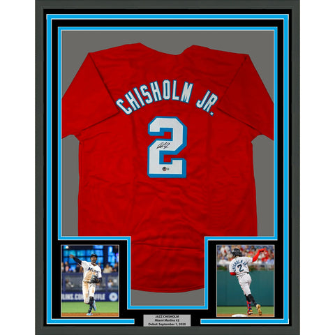Nike On-field style jersey. Everything sewn on, size Adult Large. Hand-signed by Jazz Chisholm Jr.The lot / autograph(s) includes an official James Spence Authentication (JSA) hologram and matching COA for authenticity purposes. The signing of this item was witnessed by JSA.Authentication: JSA COA
