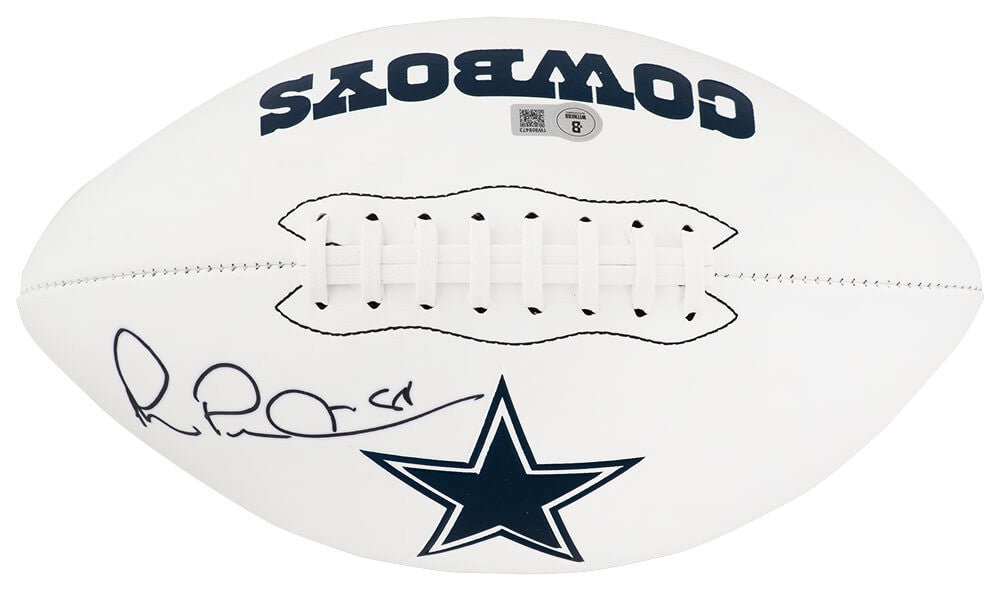 Michael Irvin signed Dallas Cowboys Franklin white logo football. Item comes with a Beckett Authentication tamper evident numbered sticker and matching Certificate of Authenticity which can be verified online.