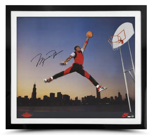 Michael Jordan Autographed Framed 18x36 Photo Bulls Dunk Contest /123 UDA
