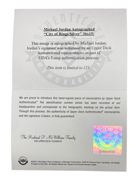 Michael Jordan Autographed Bulls "City of Rings Silver" Photograph UDA LE 23/123