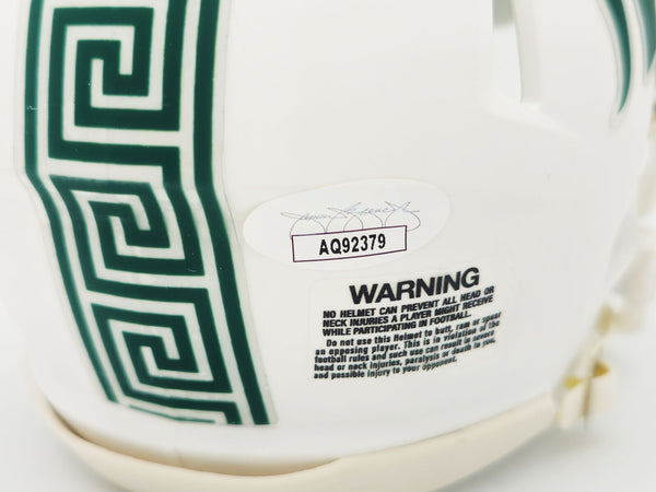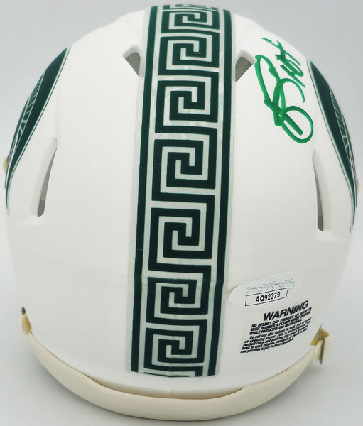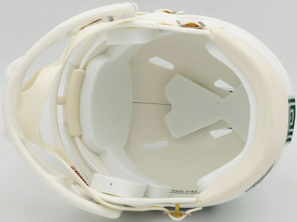 This is a Michigan State Spartans Satin White Speed Mini Helmet that has been hand signed by Andre Rison. This item was inscribed "HOF." This item has been certified authentic by JSA and comes with their tamper-proof sticker BUT IS MISSING the matching certificate of authenticity.