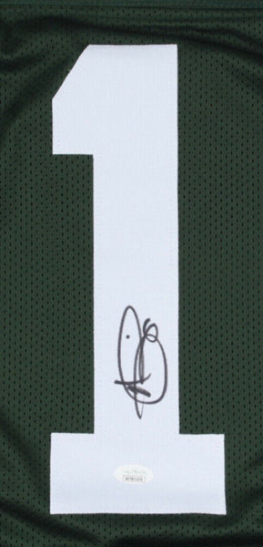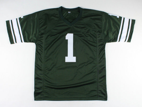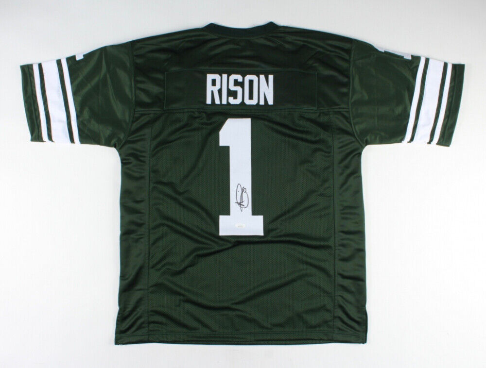 Custom on-field style jersey. Everything is sewn on, size XL. Hand-signed in black felt-tip pen by Andre (Bad Moon) Rison (Atlanta Falcons, Green Bay Packers, Indianapolis Colts, Cleveland Browns, Jacksonville Jaguars, Kansas City Chiefs, Oakland Raiders). The lot / autograph(s) includes an official James Spence Authentication (JSA) hologram for authenticity purposes. The signing of this item was witnessed by JSA. Authentication: JSA Hologram