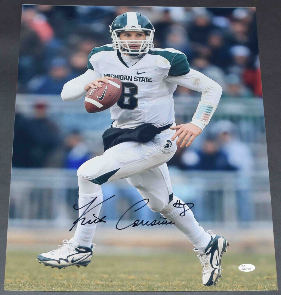 Kirk Cousins, former star quarterback for the Michigan State Spartans, has hand signed this 16x20 photo at a private signing. This item comes with a certificate of authenticity (COA) from JSA - James Spence Authentication and was signed in the presence of one of their representatives. You will receive a serial-numbered COA along with a matching serial-numbered sticker on the photo. The authenticity can be verified online by entering the serial number.Item pictured may not be the exact item you will receive. It will be similar quality, and we guarantee your satisfaction.