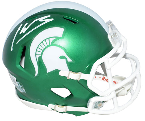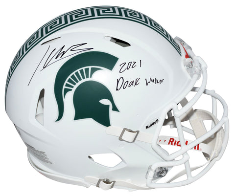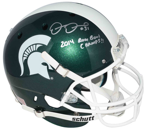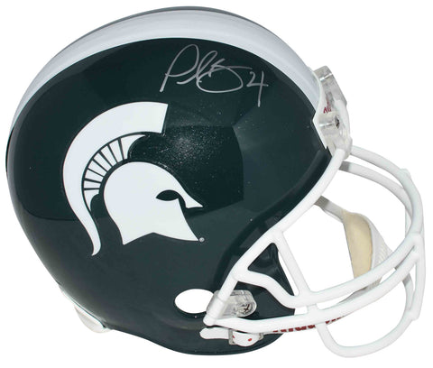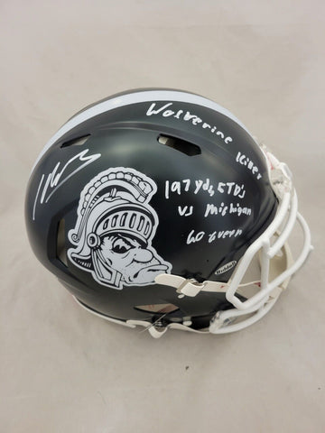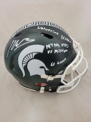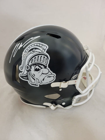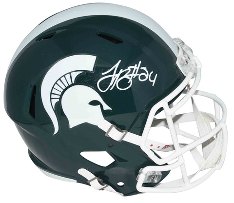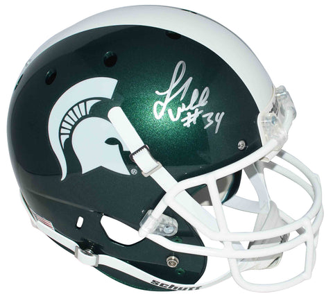 Kirk Gibson, former All-American wide receiver for the Spartans, has hand signed this Michigan State full-size throwback helmet at a private signing. This helmet is a reproduction of the style Gibson wore. This item comes with a certificate of authenticity (COA) from JSA - James Spence Authentication and was signed in the presence of one of their representatives. You will receive a serial-numbered COA along with a matching serial-numbered sticker on the helmet. The authenticity can be verified online by entering the serial number.Item pictured may not be the exact item you will receive. It will be similar quality, and we guarantee your satisfaction.