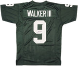 This is a Green Jersey that has been hand signed by Kenneth Walker III. This is a custom jersey with no name brand. The approximate size is XL. It has nice sewn in name and numbers. This item has been witnessed and certified authentic by Beckett Authentication (BAS) and comes with their tamper-proof witness hologram.