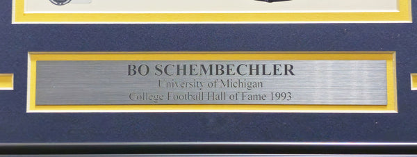This is a Framed 8x10 Photo, approximately 17x20 with the frame, that has been hand signed by Bo Schembechler. There are a few minor marks on the frame as shown. There are creases in the item as shown. This item has been certified authentic by Beckett Authentication (BAS) and comes with their tamper-proof QR Code hologram that can be verified on the Beckett-authentication.com.