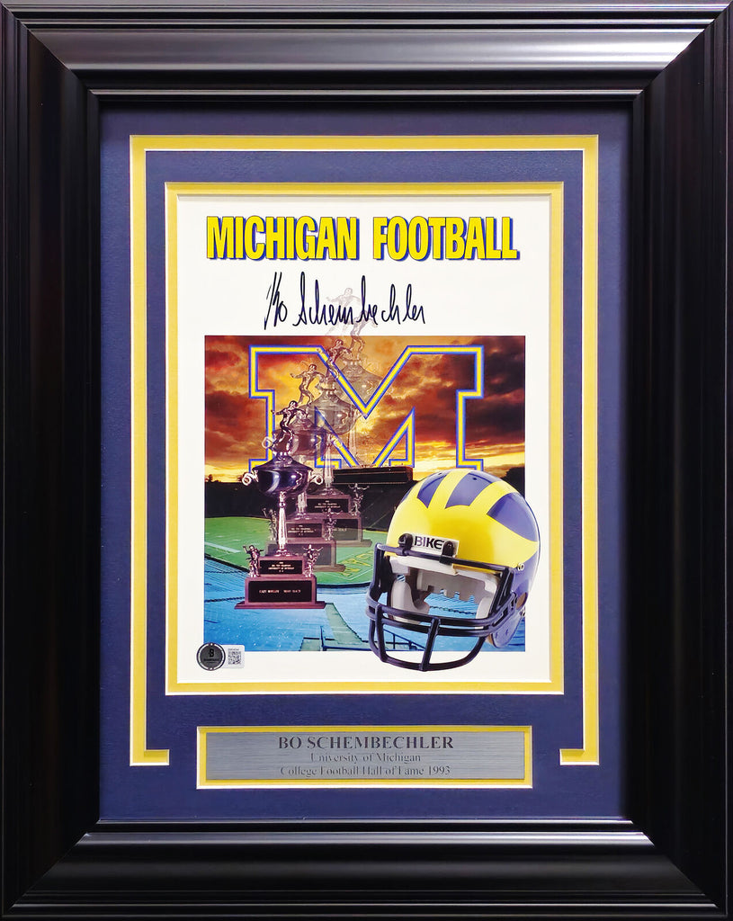 This is a Framed 8x10 Photo, approximately 15x18 with the frame, that has been hand signed by Bo Schembechler. This item has been certified authentic by Beckett Authentication (BAS) and comes with their tamper-proof QR Code hologram that can be verified on the Beckett-authentication.com.